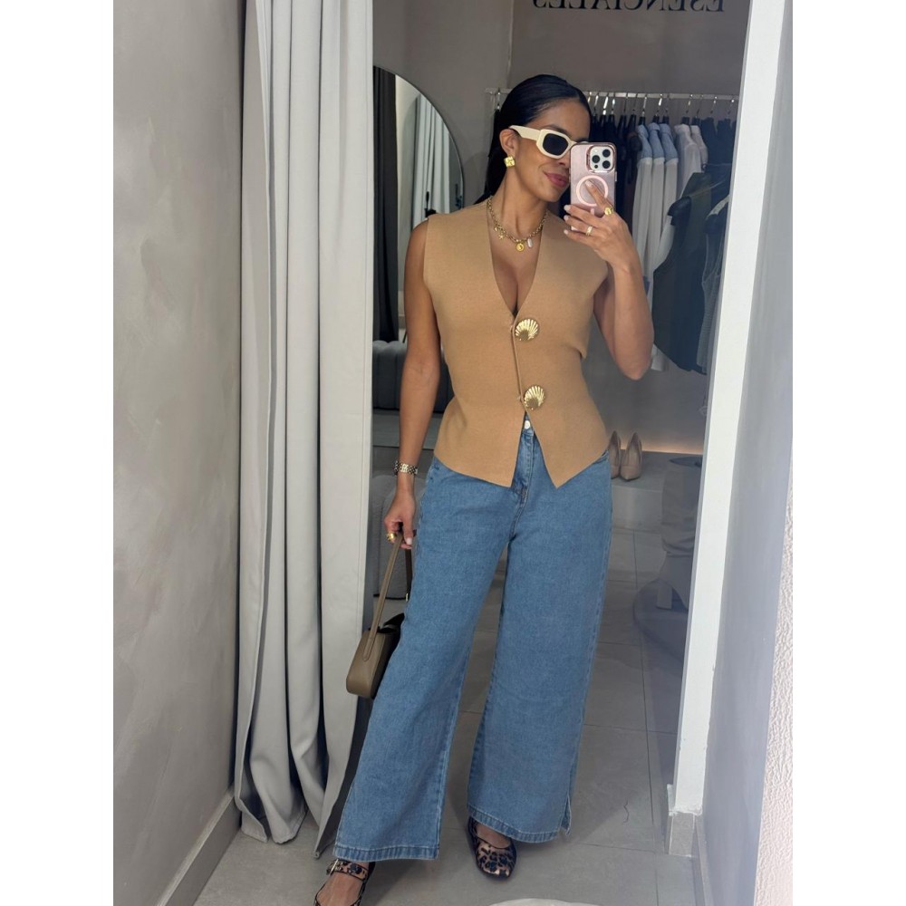 Jeans culotte, sin elasticidad, tiro medio-alto, calce perfecto.