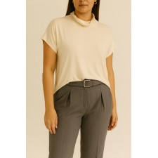 Polera ultra esencial, con precioso cuello medio en cascada, y manga sisa.