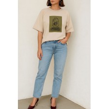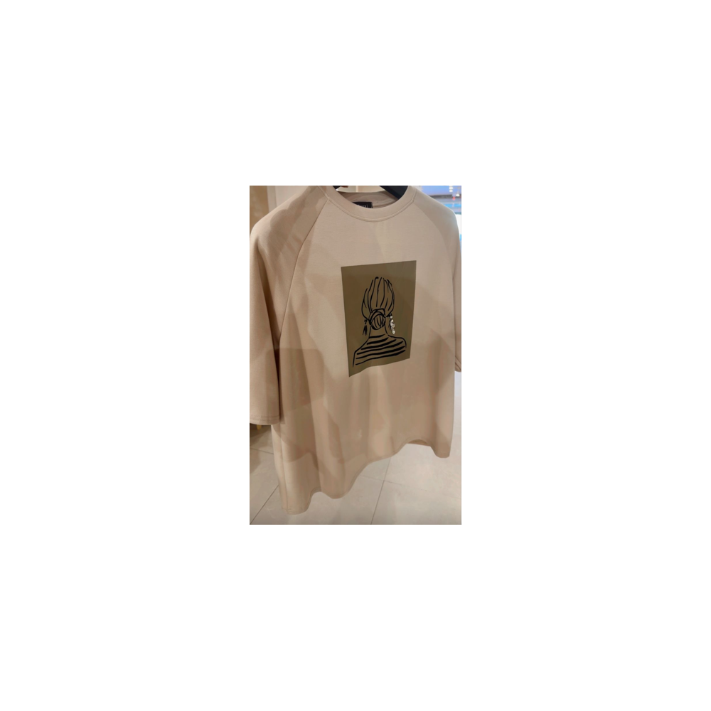 Hermosa Polera de mangas caídas y divina tela de piel de durazno con diseño y relieve decorativo.