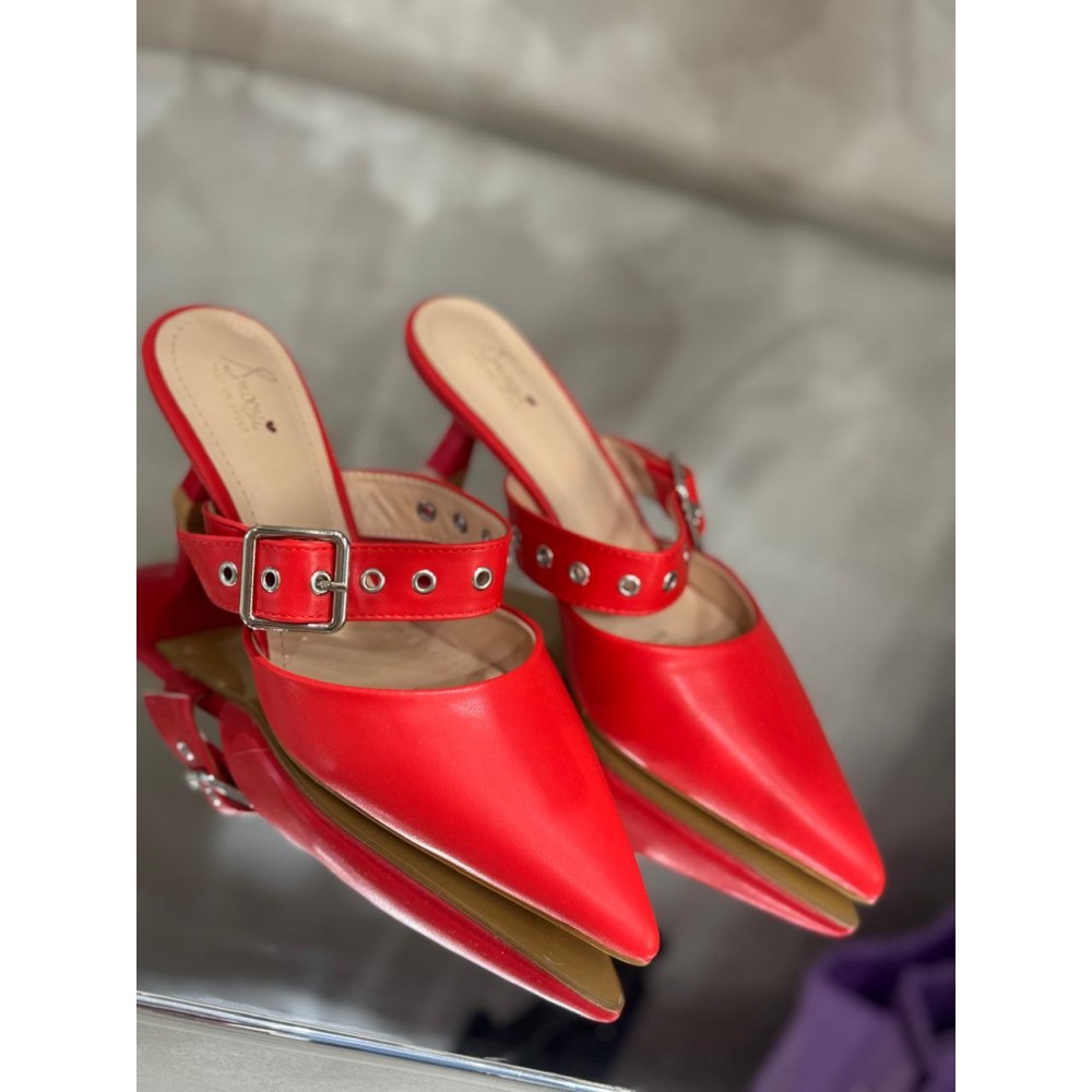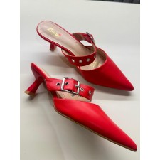 Estos mules rojos destacan por su diseño de punta fina y correa ajustable con hebilla plateada, que aporta un toque sofisticado y atrevido al look. Su tono vibrante eleva cualquier outfit, convirtiéndolos en el complemento perfecto para quienes aman destacar sin sacrificar comodidad.