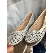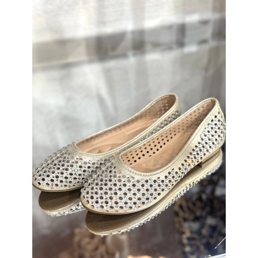 Estas balerinas doradas están diseñadas para mujeres que aman verse femeninas sin renunciar a la comodidad. Su acabado metalizado suave y los apliques brillantes tipo cristal aportan un toque glam encantador que ilumina cualquier look.
