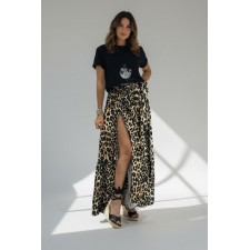 Nuestra falda midi de estampado leopardo es la pieza perfecta para una mujer segura, femenina y con actitud. Su caída fluida y la abertura lateral crean un movimiento precioso al caminar, estilizando la figura y añadiendo un toque seductor sin perder elegancia.