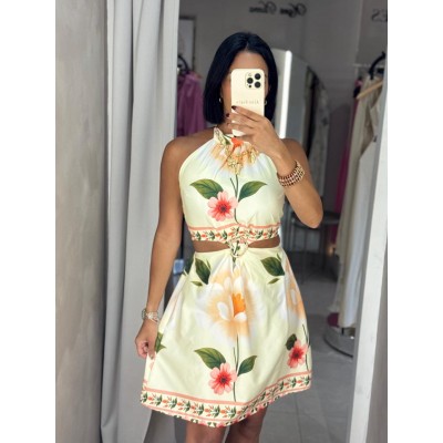 Este enterizo es pura sofisticación veraniega. Su escote halter con amarre al cuello realza el busto y estiliza la parte superior del cuerpo, mientras el cut out central define la cintura con un toque sensual y moderno, sin perder elegancia.