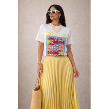Una polera qu Confeccionada en algodón suave, esta polera blanca destaca por su estampado ilustrado aportan color, frescura y un aire veraniego irresistible.