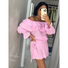 Diseñado para destacar con sutileza, este conjunto en tono rosa suave envuelve el cuerpo con ligereza y movimiento, ideal para días cálidos y atardeceres junto al mar.