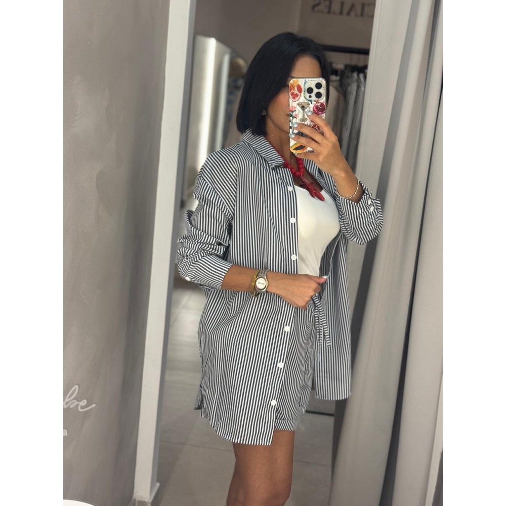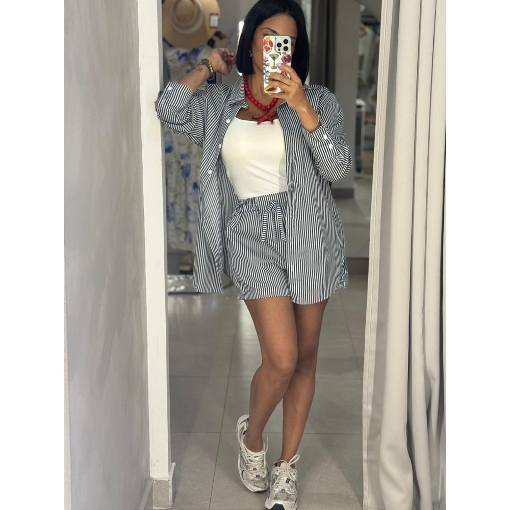 Compuesto por camisa oversize de manga larga con botones frontales y short de tiro alto con pretina elasticada y lazo ajustable, este conjunto combina comodidad y estilo sin esfuerzo. Su diseño ligero y suelto permite libertad de movimiento, convirtiéndolo en un básico elevado para el día a día.