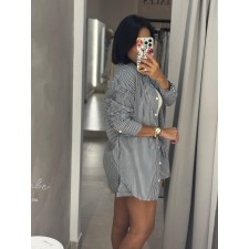 Las rayas verticales estilizan visualmente la figura, mientras que el calce relajado aporta un aire urbano y actual.