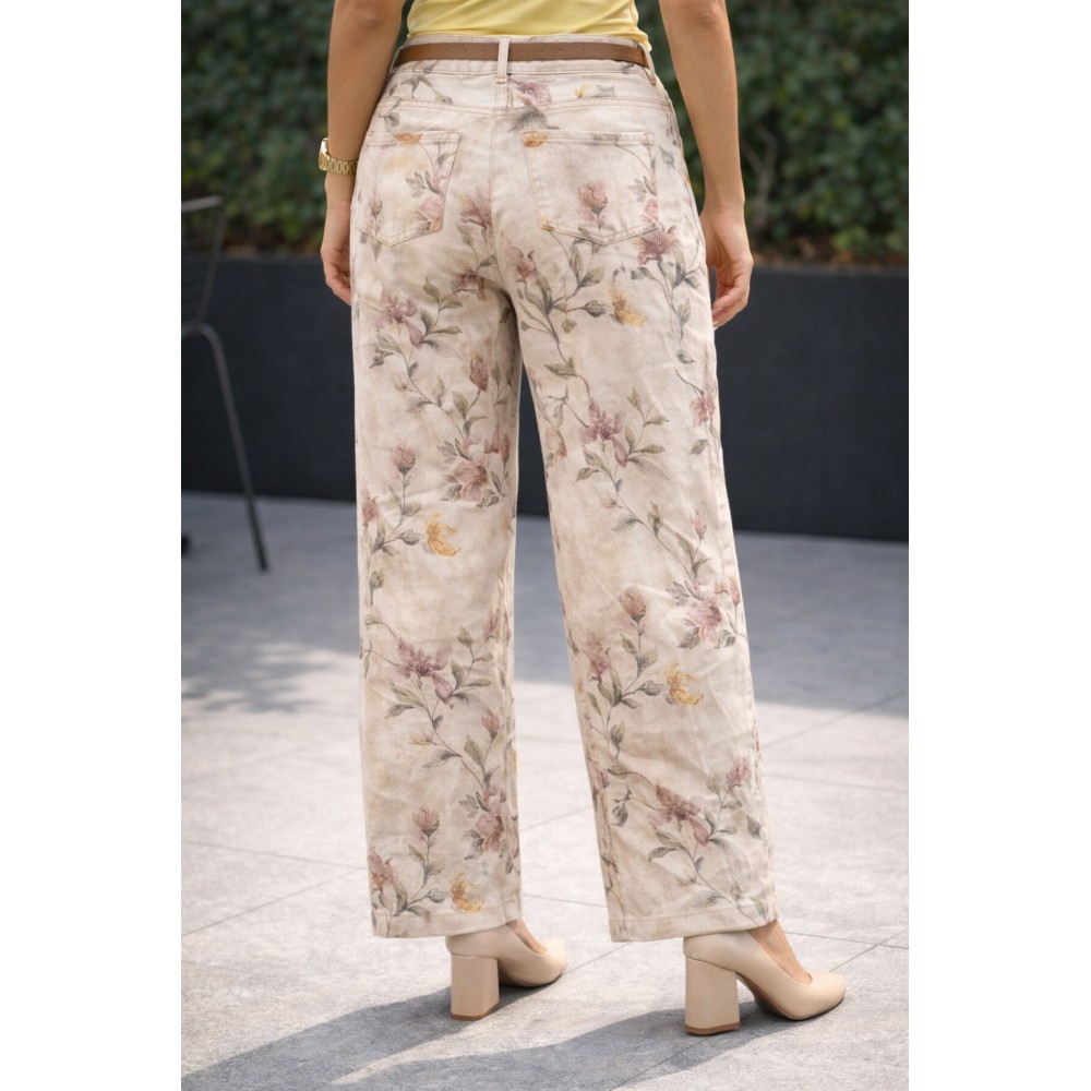 Un pantalón que eleva cualquier look sin esfuerzo. Su estampado floral en tonos suaves sobre base crema aporta feminidad y frescura, mientras su corte recto estiliza la silueta y alarga visualmente las piernas. Confeccionado en una tela liviana y fluida, es cómodo, elegante y perfecto para transitar del día a la noche.