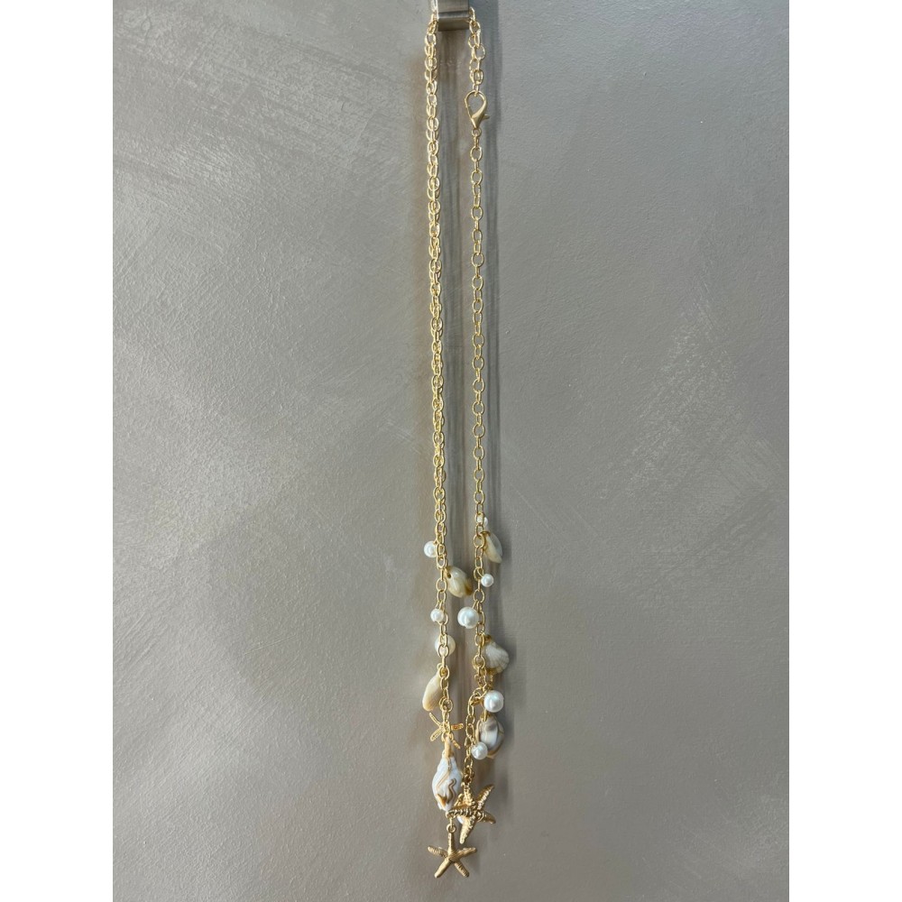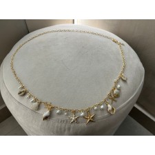 Este cinturón de cadena dorada está diseñado con delicados charms inspirados en el mar: caracolas, estrellas de mar y perlas que aportan movimiento, brillo y un aire sofisticado pero fresco. Cada detalle evoca elegancia costera con un toque femenino y magnético.