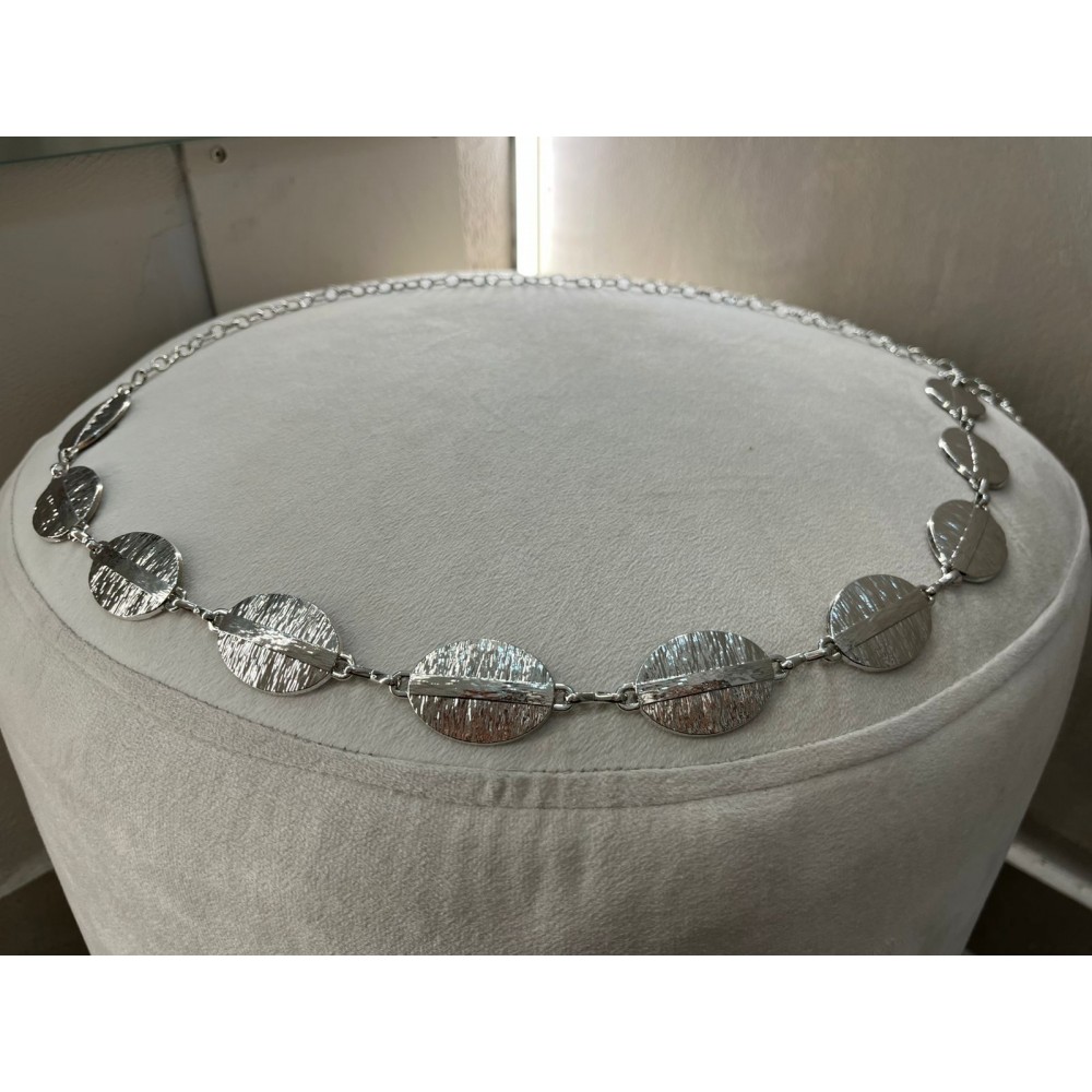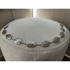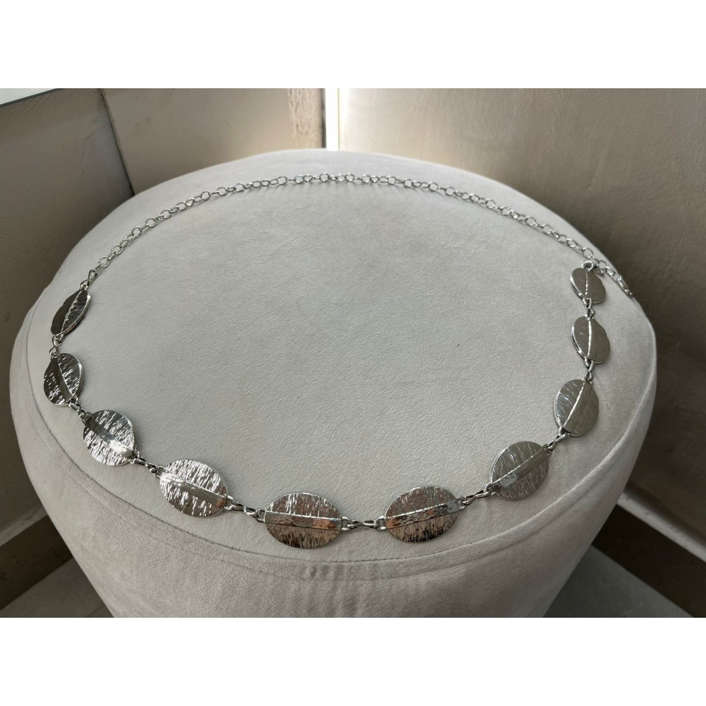 La textura sutil en cada placa aporta dimensión y carácter, mientras que la cadena ajustable permite llevarlo a la cintura o a la cadera según el look.