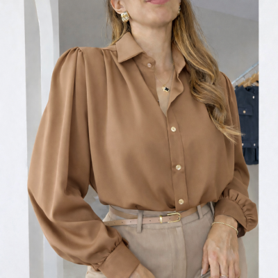 Combínala con denim azul oscuro y cinturón cuero para un look pulido de día, o sobre un total look beige o negro para una imagen más sofisticada y monocromática. El café transmite estabilidad, confianza y elegancia atemporal… ideal para mujeres que quieren verse firmes pero femeninas.