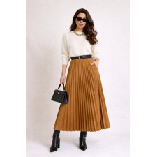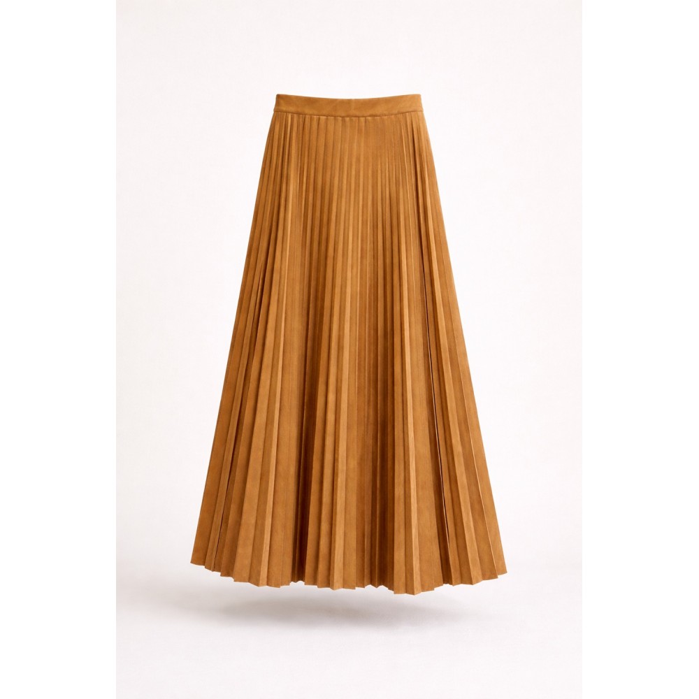 Una prenda atemporal que combina elegancia y versatilidad. Nuestra falda midi plisada está confeccionada en un suave acabado gamuzado que aporta textura y sofisticación a cualquier look. Su silueta fluida y plisados definidos estilizan la figura, mientras que su largo midi la convierte en una opción perfecta tanto para looks casuales como más elegantes.