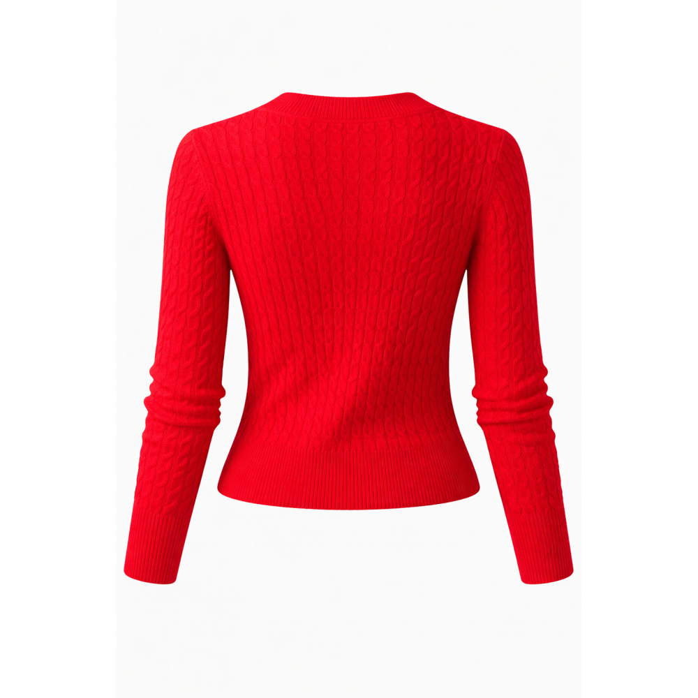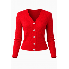 Un cardigan elegante que combina delicadeza y estilo atemporal. Confeccionado en tejido suave con textura trenzada, este diseño destaca por su silueta ligeramente entallada que realza la figura y aporta un look sofisticado y femenino.